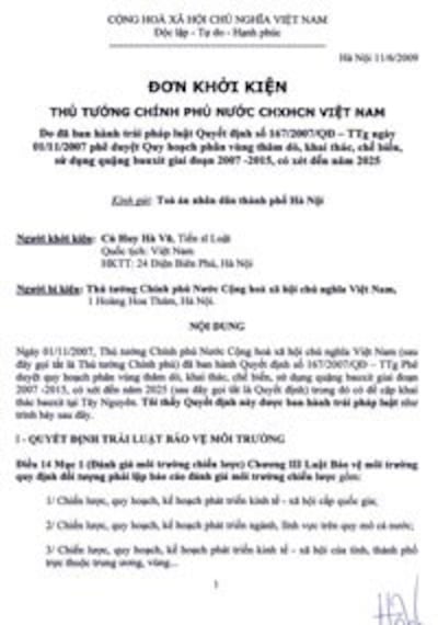 - Trả đơn kiện Thủ tướng về vụ bauxite